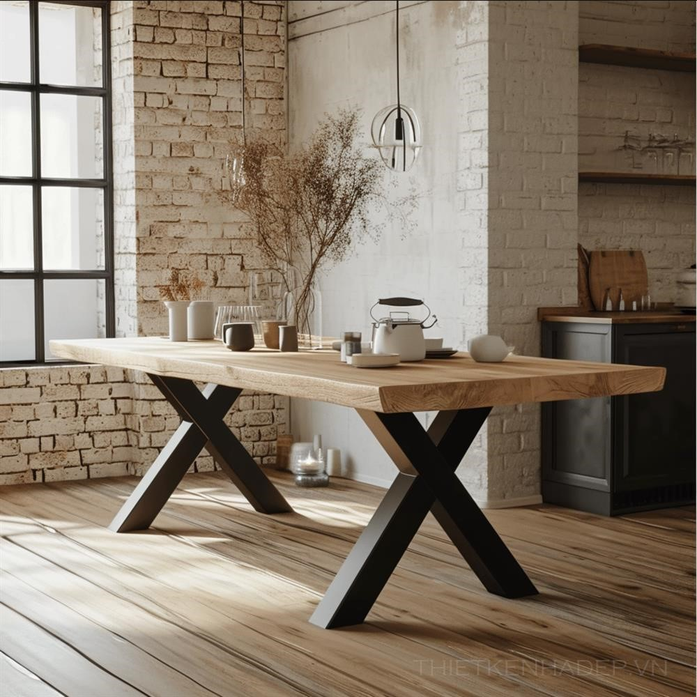 PROMPT: Rectangle shaped wooden dining table with black steel Scandinavian table legs --v 6.0 Ý Nghĩa:
