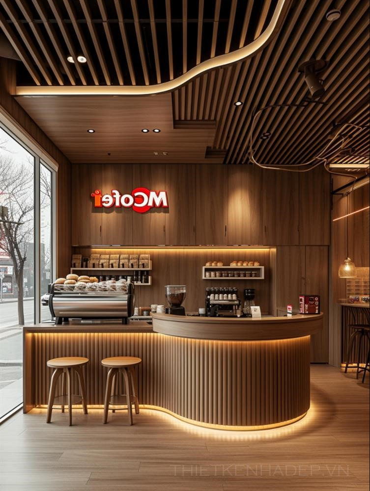 PROMPT: McCafé shop, coffee and burgers, inside store design, minimalist style, Wood color and white --ar 3:4 --s 250 --v 6.0 Ý Nghĩa: