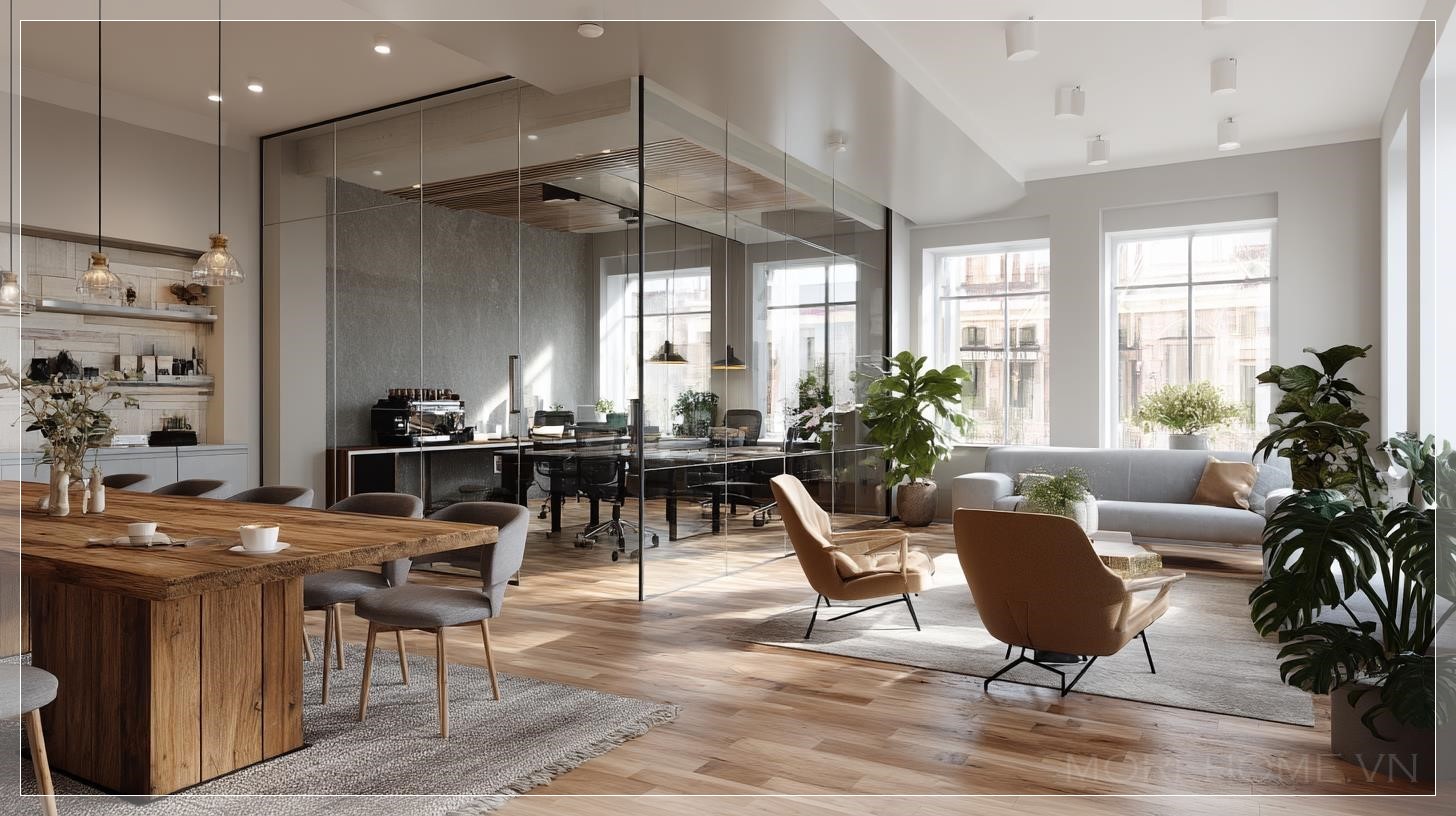 Không gian làm việc hiện đại không chỉ là nơi để hoàn thành công việc mà còn là nơi truyền cảm hứng cho sự sáng tạo và đổi mới. Trong một văn phòng thiết kế theo phong cách Scandinavian, yếu tố ánh sáng tự nhiên và sự kết hợp tinh tế của vật liệu gỗ và kính tạo nên một môi trường làm việc thoải mái và hiệu quả. Một trong những điểm nhấn quan trọng của không gian này chính là góc pha cà phê, nơi không chỉ có máy pha espresso hiện đại mà còn là không gian thư giãn lý tưởng cho nhân viên.