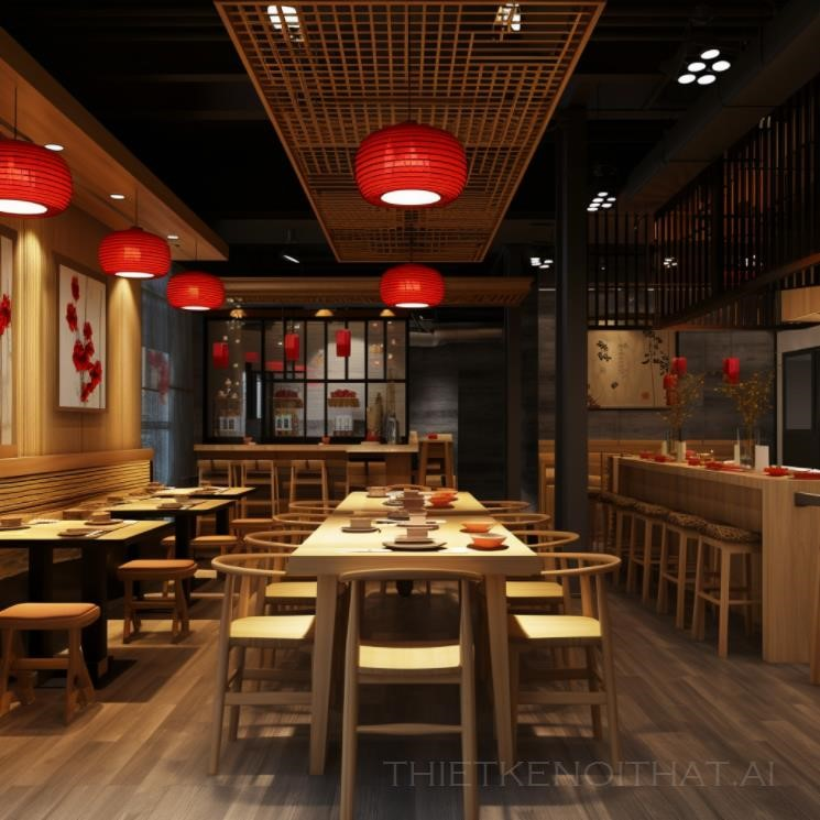 PROMPT: interior design for a hibachi and ramen restaurant, modern style, photorealistic --v 6.0
