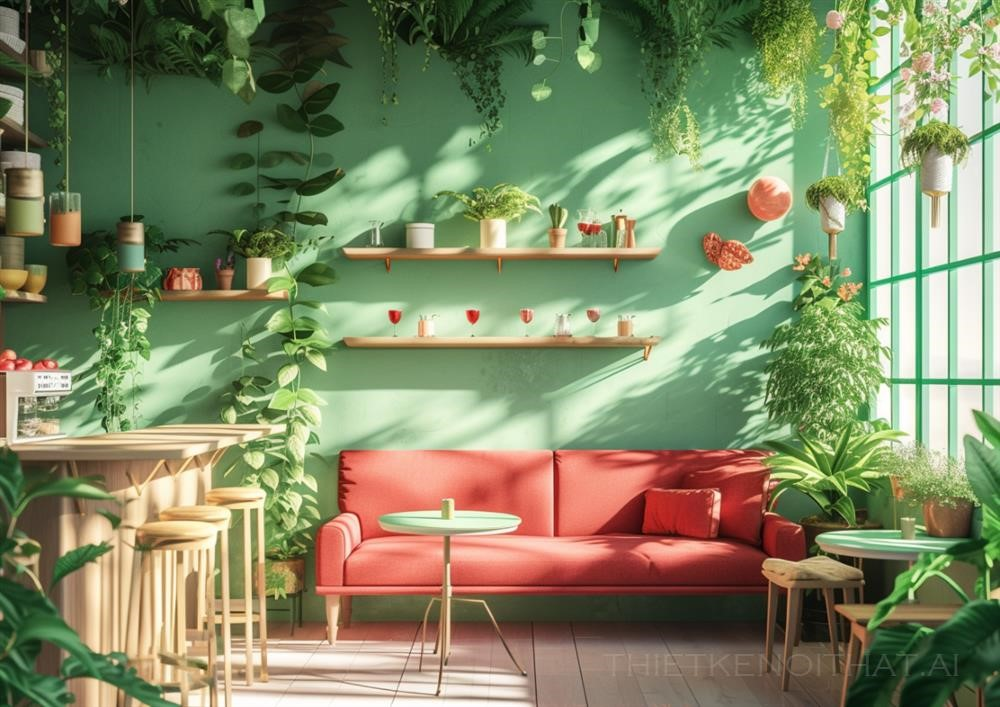 PROMPT: Very minimalist pop art,cozy cafe inside with spring decoration and sofa,8K --ar 7:5 --v 6.0 Ý Nghĩa:
