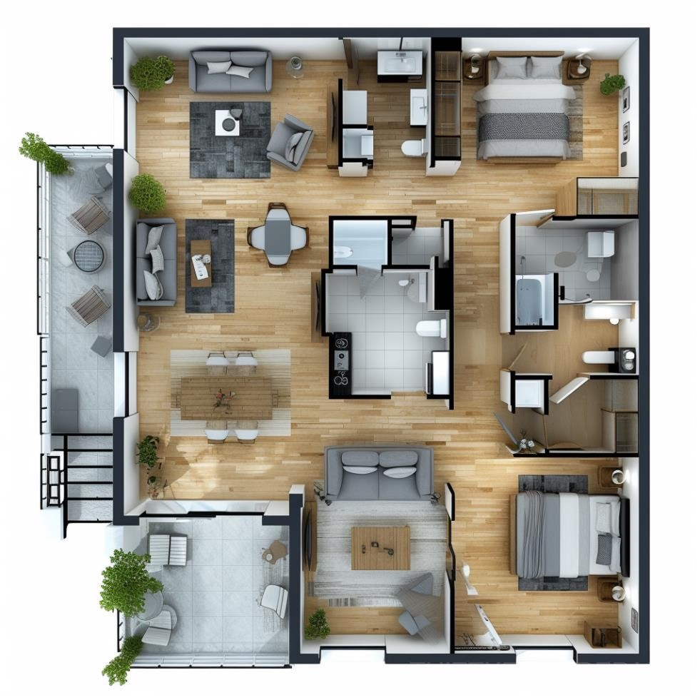 PROMPT: design a floor plan for 3 bedroom modern house --v 6.0 Ý Nghĩa: